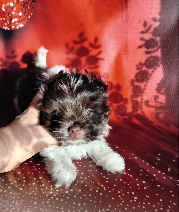 Цветной йорк, окрас биро без подпала, девочка. родилась 141 г, вес в 2 мес 1190 г