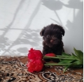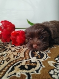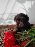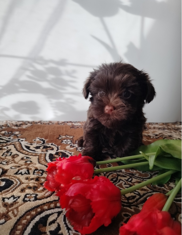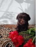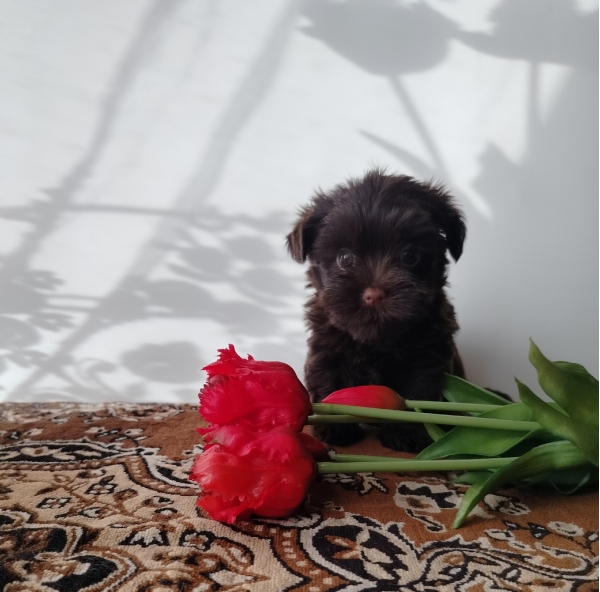 Цветной йорк шоколадного окраса без подпала, девочка, родилась 198 г, в 1 месяц 650 г
