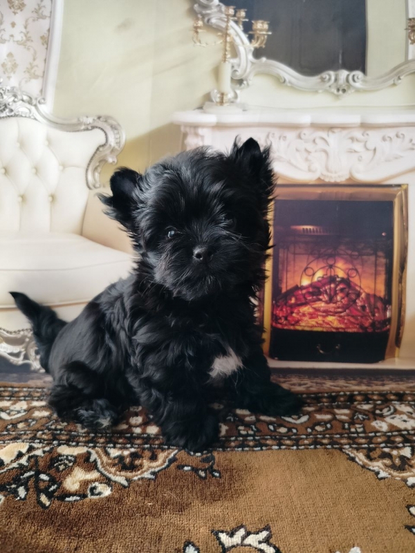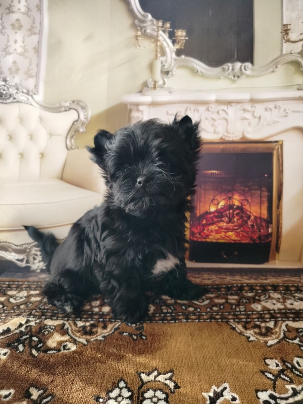 Цветной йорк черного окраса без подпала. родилась с весом родилась 165 г, вес в 2 мес 960 г